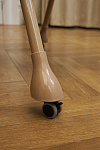 Мобильность в передвижении обеспечивается поворотными колесиками на 360 градусов, оснащенными функцией блокировки, что предотвращает случайное перемещение стула. Колеса выполнены таким образом, что не повреждают напольное покрытие, сохраняя эстетику интерьера.
