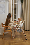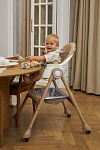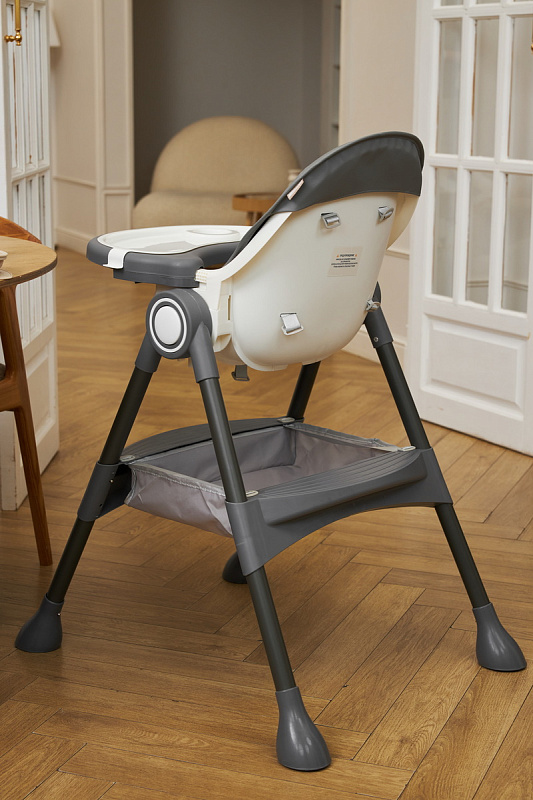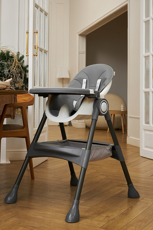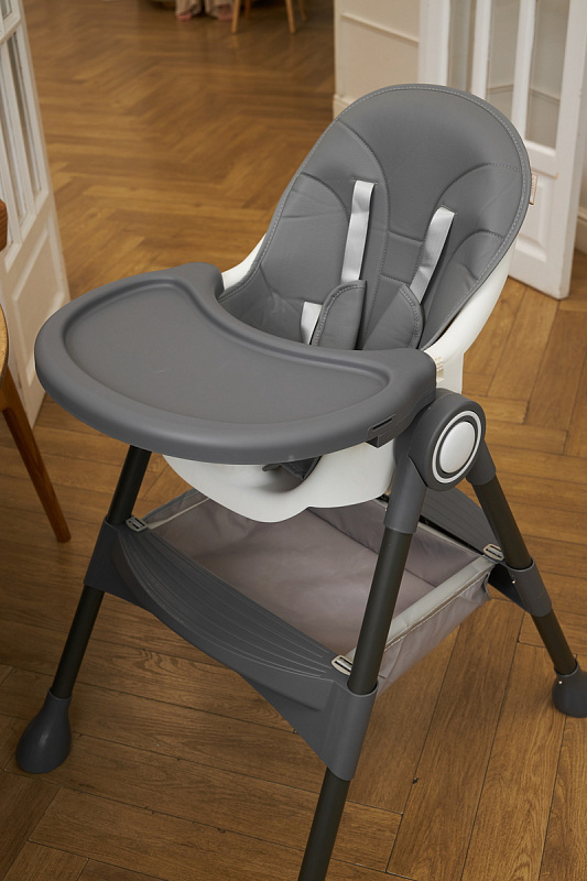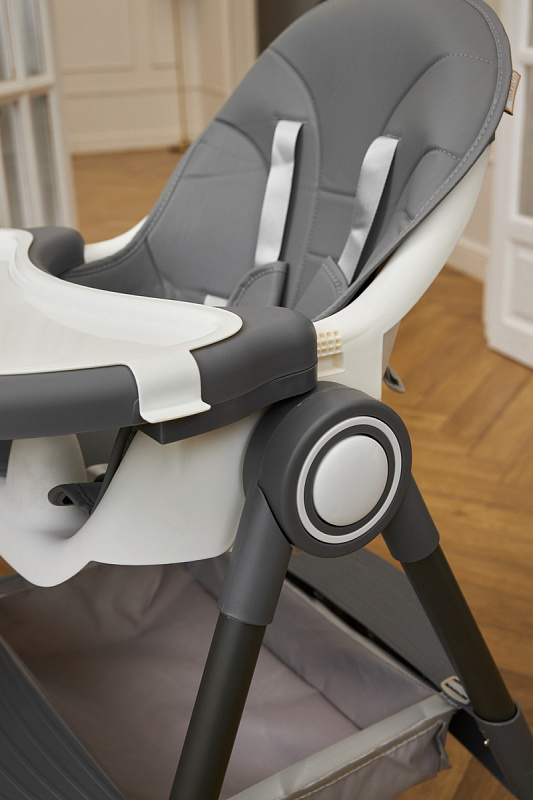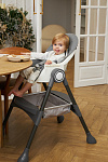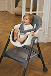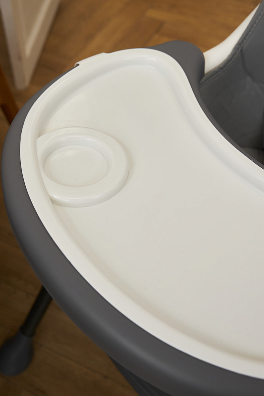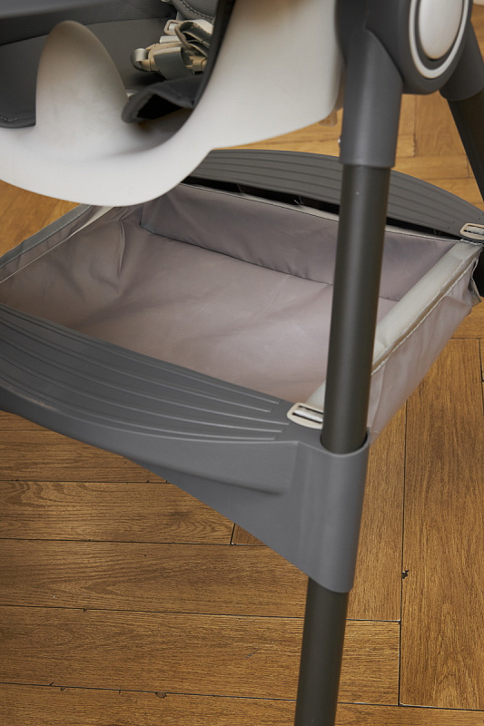 Дополнительные удобства обеспечиваются съемным органайзером для любимых игрушек ребенка, съемным столиком с регулировкой по глубине и дополнительным подносом-вкладышем, которые позволяют разместить необходимые предметы рядом с крохой, предотвращая хаос вокруг места приема пищи. Углубление под бутылочку гарантирует безопасность и удобство питья.