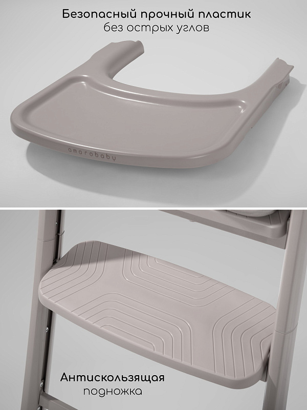 Стульчик для кормления AmaroBaby Easy Grow — удобство и безопасность на годы вперед! Растущий стул создан с заботой о малышах и родителях, объединяя надежность, комфорт и функциональность. Прочная конструкция гарантирует устойчивость. Стульчик детский предназначен для детей от 6 месяцев. Предусмотрена регулировка высоты сиденья и подножки, подстраиваясь под рост ребенка. Можно обеспечить ребенку правильную посадку за общим столом. Спинка поддерживает правильную осанку. В комплекте со стульчиком предусмотрен мягкий матрасик. Данная модель заменяет сразу несколько товаров: стульчик для кормления малыша и первый рабочий стул ребёнка. При правильной регулировке ребенку обеспечена удобная и эргономически правильная посадка в любом возрасте. Практичность в период прикорма и универсальность для творчества — всё это обеспечивает съемная столешница стульчика для кормления, облегчая родителям множество задач, от кормления до организации творческих занятий.