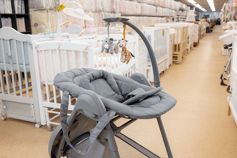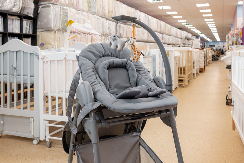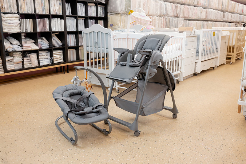 Пока малыш еще совсем маленький используйте шезлонг с регулируемой по наклону спинкой, обеспечивая комфортное положение для сна или игры.