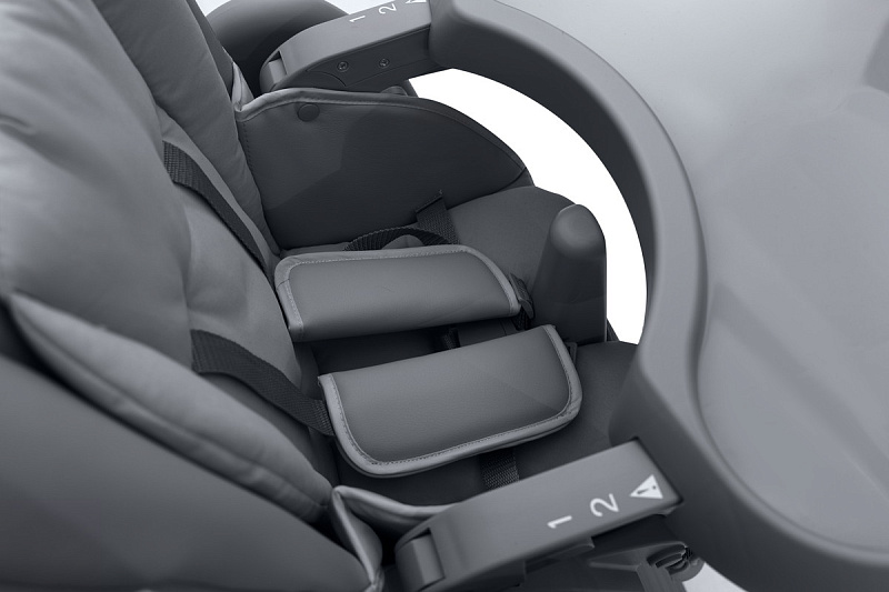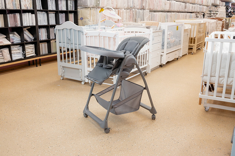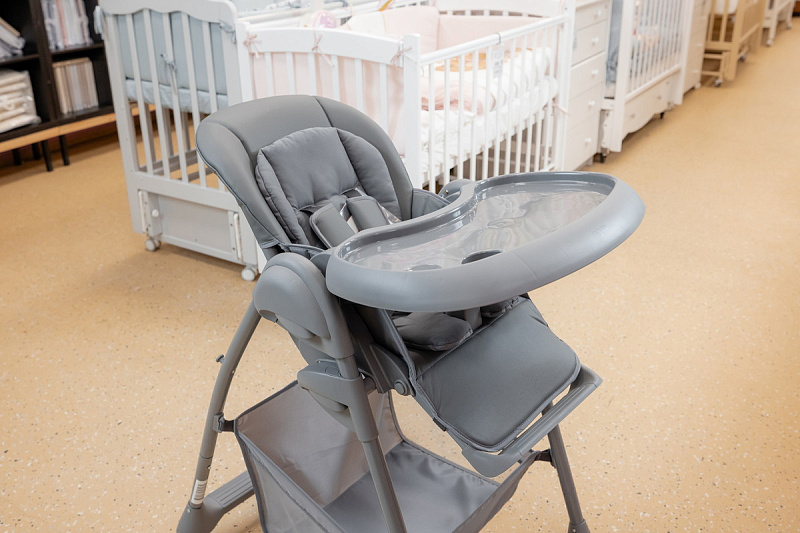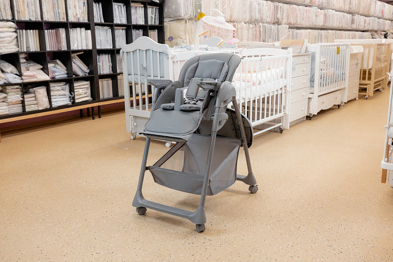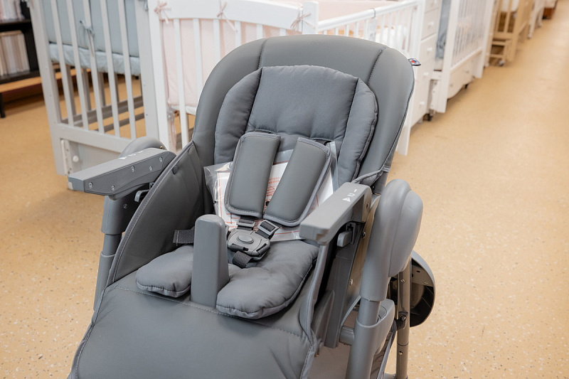 Когда малыш научится сидеть самостоятельно, можно пересаживать его в стульчик. Высота стульчика легко регулируется, что позволяет малышу сидеть с Вами за обеденным столом. Для безопасности используются 5-точечные ремни.