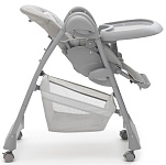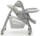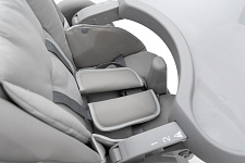 Когда малыш научится сидеть самостоятельно, можно пересаживать его в стульчик. Высота стульчика легко регулируется, что позволяет малышу сидеть с Вами за обеденным столом. Для безопасности используются 5-точечные ремни.