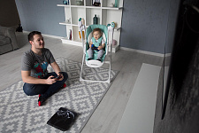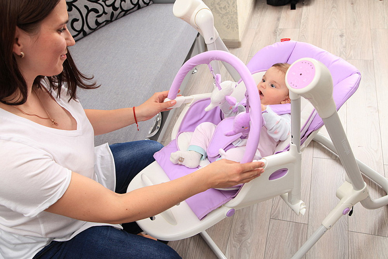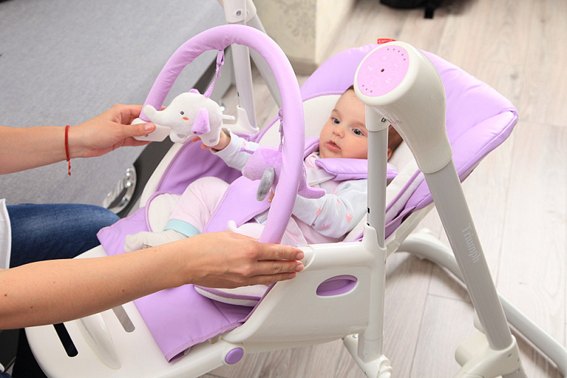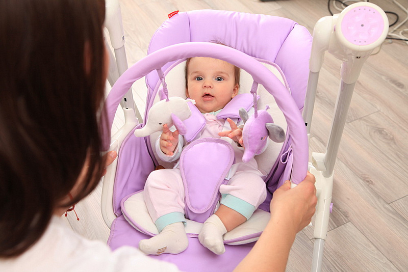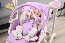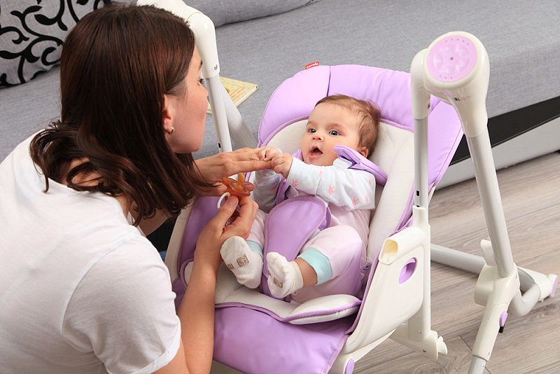 Оснащен регулировкой сидения по высоте, регулировкой спинки и регулировкой подножки, что позволяет стульчику ""расти"" вместе с малышом. Бесшумный маятниковый механизм позволяет укачивать ребенка в стульчике,