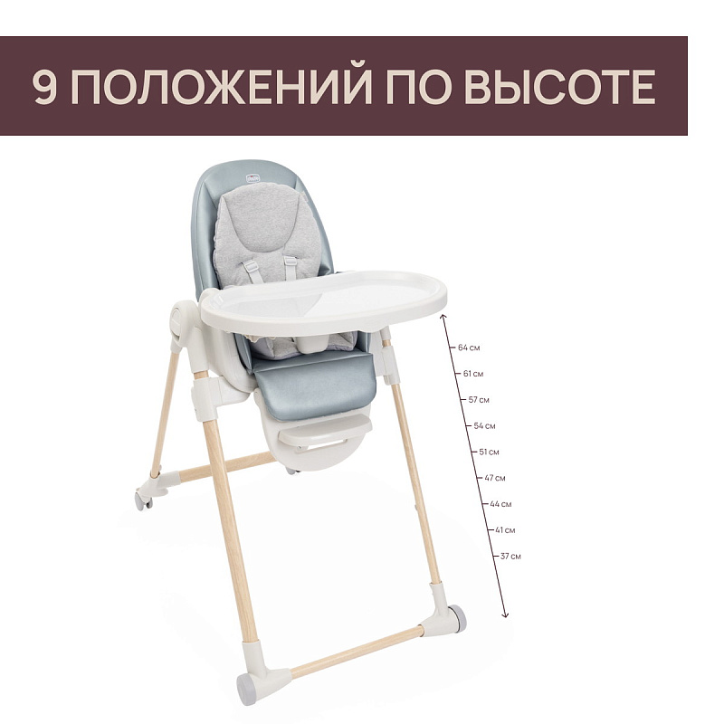 Регулируемый угол спинки и подножки, регулируемая высота ступеньки для ножек.