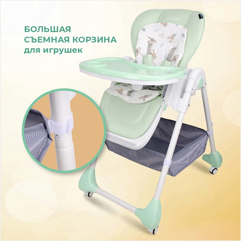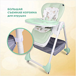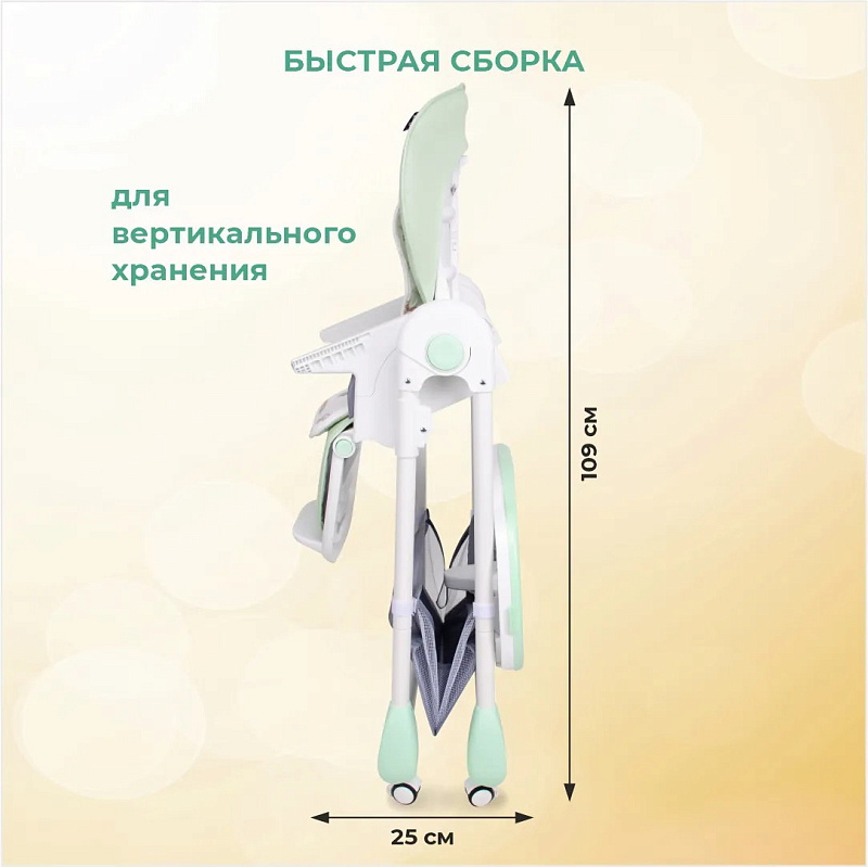 • Безопасные ремни и разделитель для ног, обеспечивают дополнительную защиту и предотвращают скольжение малыша во время еды.