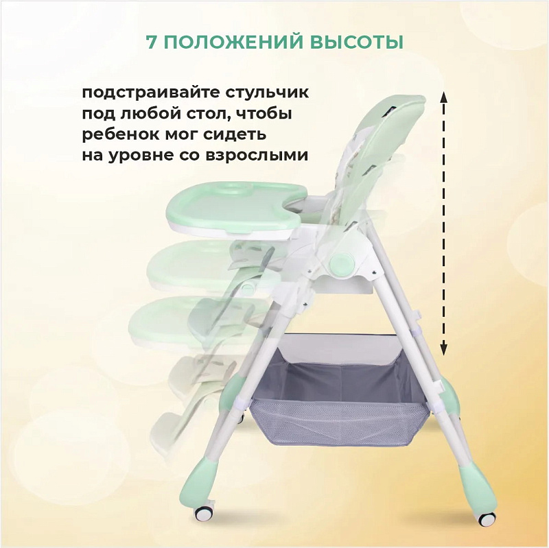 • 7 положений регулируемой высоты позволяет подстроить стульчик под любой стол, чтобы ребенок мог сидеть на уровне с взрослыми.