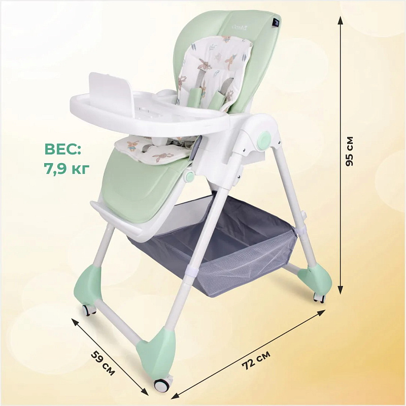 • 3 положения регулировки спинки и подножки, стульчик подходит для самых маленьких.