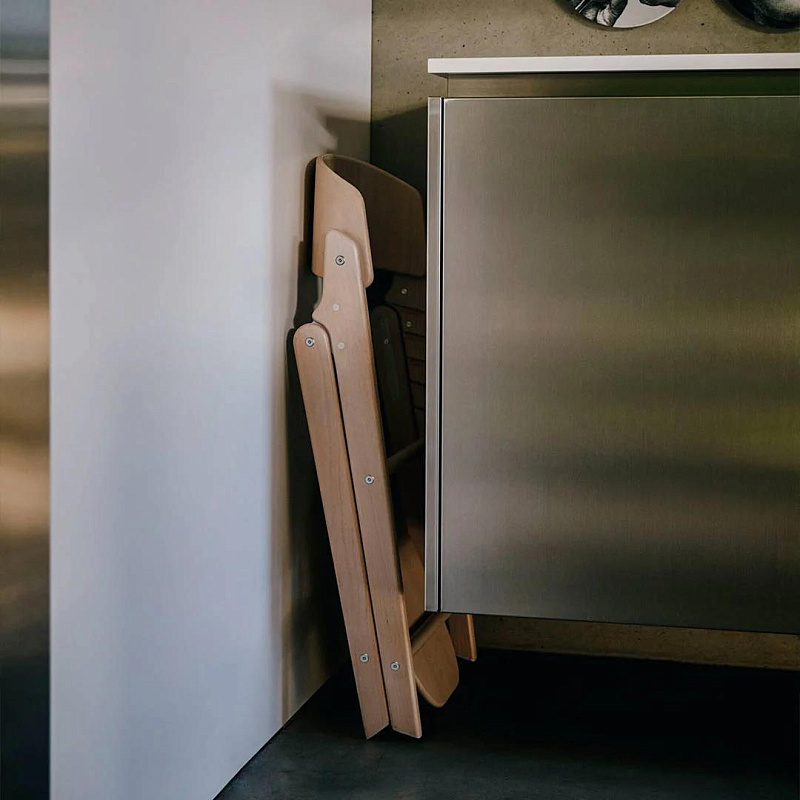 В сложенном виде стульчик Click & Fold легко брать и переносить куда угодно благодаря его изысканному дизайну и легкому корпусу из бука.