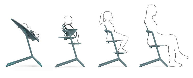 В наборе Lemo 4-в-1, вневременном решении для стульчика для кормления, есть все необходимое, чтобы усадить любого члена семьи от рождения до 99 лет. Начните с шезлонга (без подставки) после рождения ребенка. Как только ваш ребенок научится сидеть, входящий в комплект модуль к стульчику Cybex Lemo Baby Set обеспечит ему поддержку, когда это необходимо. А по мере взросления можно уже использовать как полноценный стул.