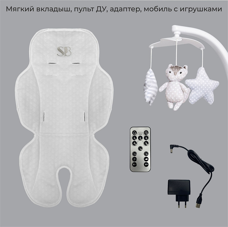 Функция Bluetooth: подключайте свой смартфон и наслаждайтесь любимыми мелодиями или сказками малыша.5 скоростей укачивания: выберите оптимальный режим для вашего ребёнка.