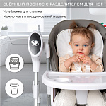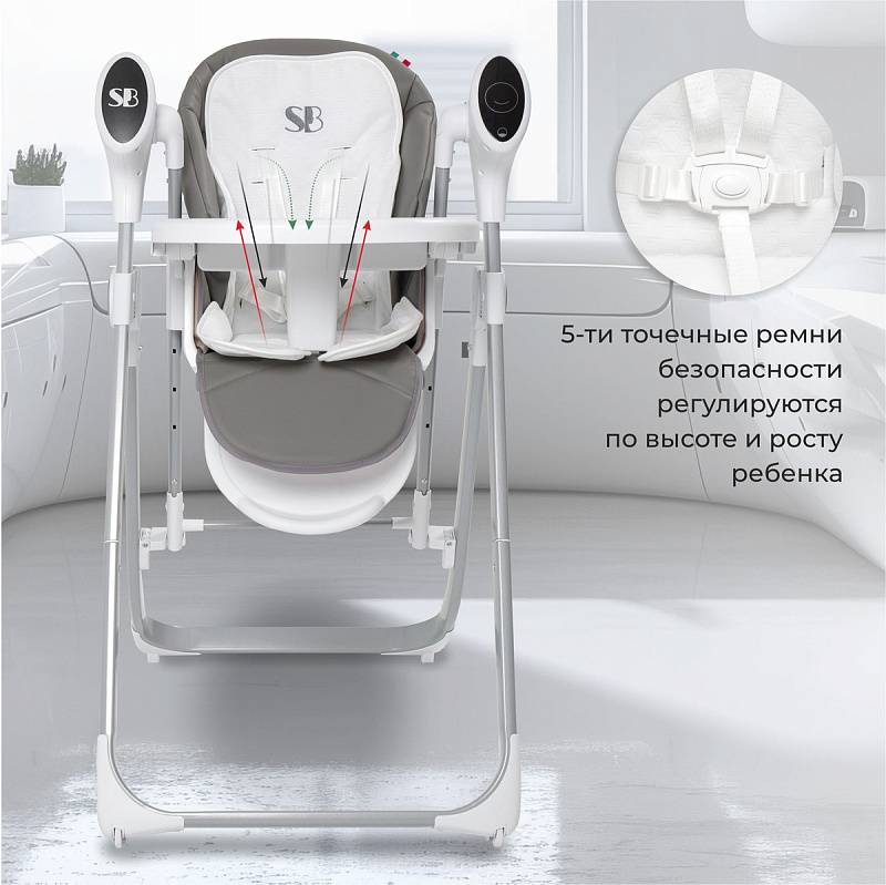Автоматическое выключение через 2 часа работы: экономия энергии и забота о малыше.6 уровней высоты сиденья: адаптируйте стульчик под рост ребёнка.4 положения регулировки наклона спинки: комфортное положение для сна и бодрствования.2 положения регулировки глубины столешницы: удобство для кормления и игры.4 уровня регулировки складывающейся подножки: адаптация под возраст и рост малыша.5-точечные ремни безопасности: надёжная защита ребёнка.