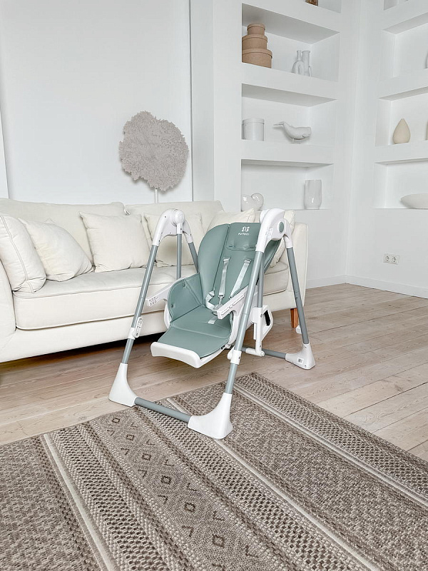 Стульчик легко подстроится, чтобы ребенок и мама во время кормления чувствовали себя удобно. Модель можно регулировать по высоте в 6 положениях, можно менять угол наклона подножки и положение сидения, регулировать удобное положение спинки. Имеет 3 скорости укачивания и 8 мелодий, чтобы любой малыш чувствовал себя уютно и мог быстрее успокоиться и уснуть. Таймер остановит укачивание через 15, 30 и 45 минут. Вы сможете контролировать движения люльки, выбирать любимую мелодию и регулировать громкость звучания как на панели стульчика, так и с телефона, установив приложение Baby Swing.