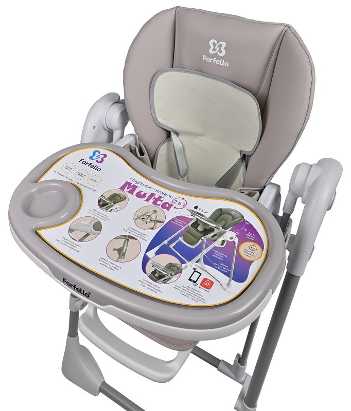Стульчик легко подстроится, чтобы ребенок и мама во время кормления чувствовали себя удобно. Модель можно регулировать по высоте в 6 положениях, можно менять угол наклона подножки и положение сидения, регулировать удобное положение спинки. Имеет 3 скорости укачивания и 8 мелодий, чтобы любой малыш чувствовал себя уютно и мог быстрее успокоиться и уснуть. Таймер остановит укачивание через 15, 30 и 45 минут. Вы сможете контролировать движения люльки, выбирать любимую мелодию и регулировать громкость звучания как на панели стульчика, так и с телефона, установив приложение Baby Swing.