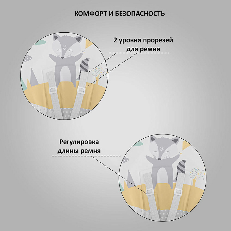 5-ти точечный ремень фиксации обеспечит Вашему ребенку безопасность, а дополнительный упор не позволит ему съезжать вниз во время игры или еды. Надежная конструкция фиксации в разложенном положении обеспечивает устойчивость и безопасность.