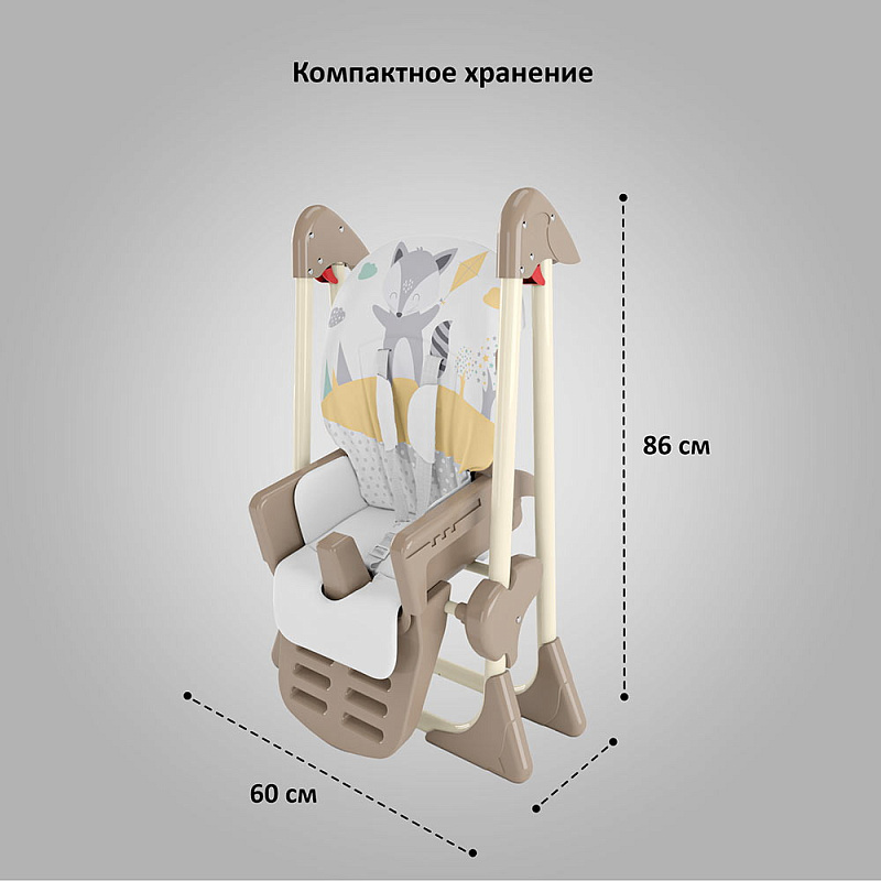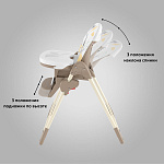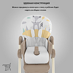 Много функциональный и имеет различные уровни по высоте и наклону спинки, легко складывается и компактный регулируемый уровень столика плюс имеет дополнительный поднос. Поднос имеет 3 ступени фиксации и очень важной деталью является съемный поднос который после еды убирается не снимая основного подноса. Это дает дополнительные возможности во время игры или рисования ребенку.