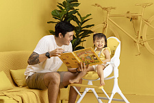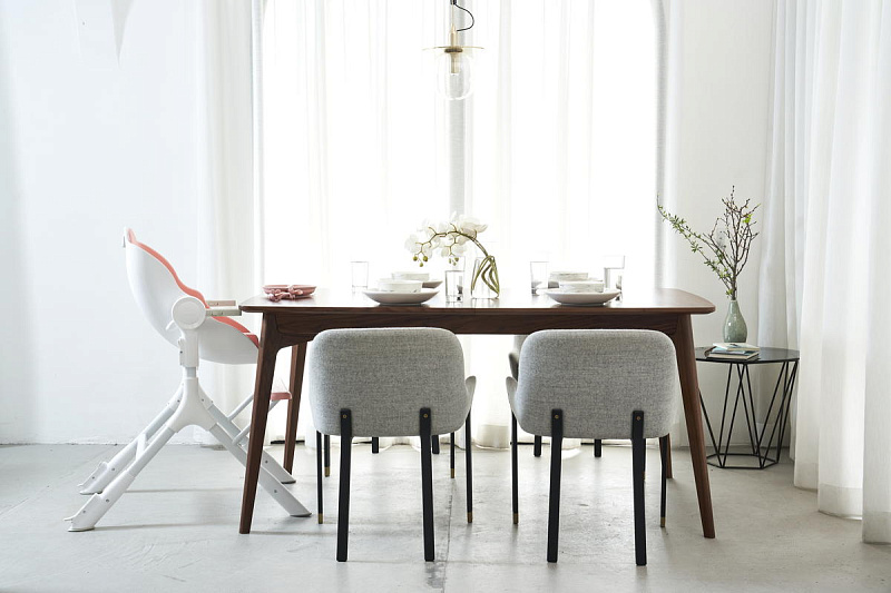 Столик снимается одним движением, позволяя максимально придвинуть стульчик к общему столу;