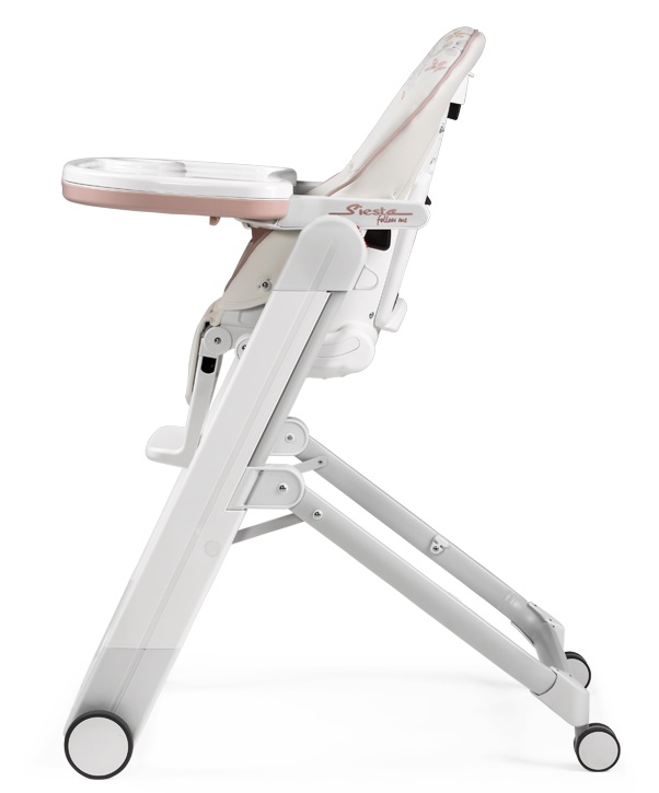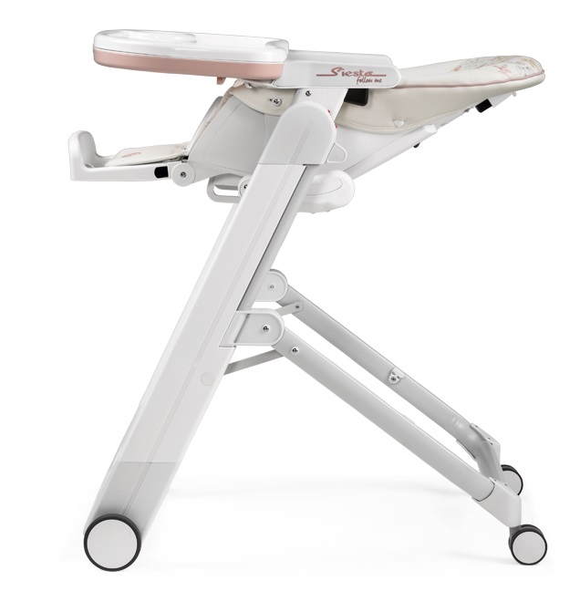 Благодаря регулировке сиденья по высоте в девяти положениях Siesta Follow Me подойдет к большинству столов. Стульчик можно использовать без подноса, чтобы ребенок мог сидеть за столом со взрослыми. Устойчивость обеспечивает широкая база ножек. Задние колеса вращаются на 360 градусов, что позволяет легко маневрировать в ограниченном пространстве комнат.Компактно складывается