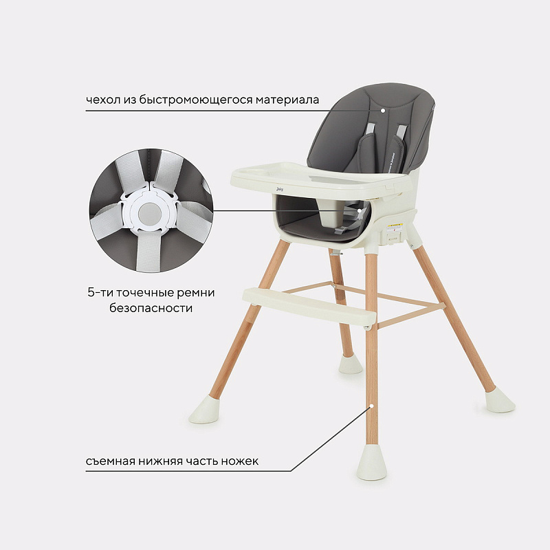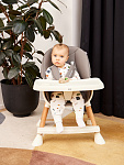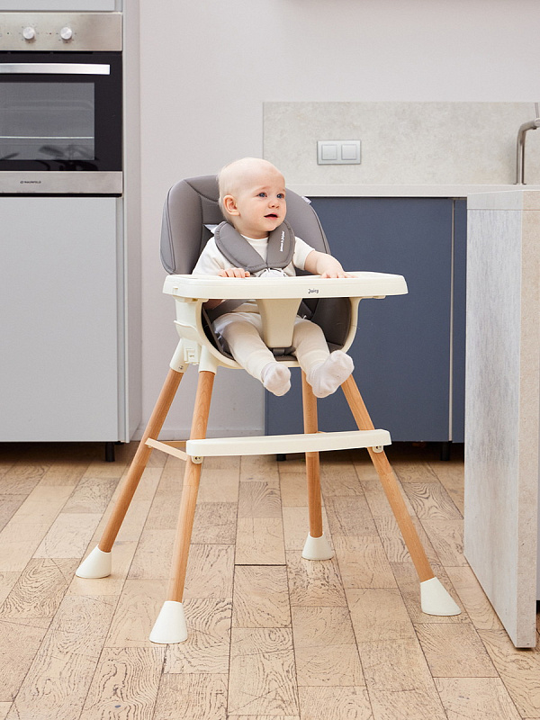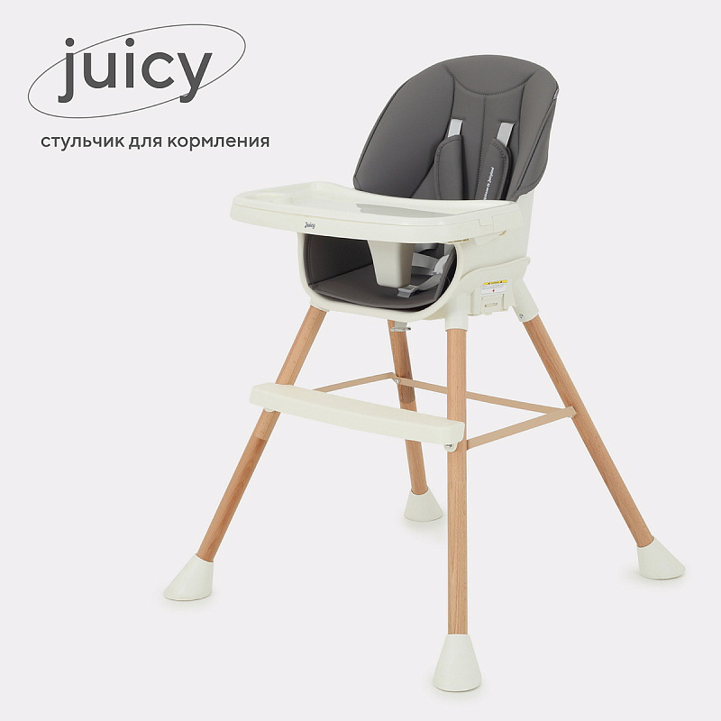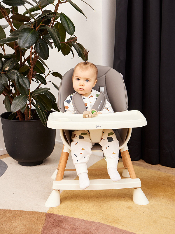 Детский стульчик-трансформер для кормления 3 в 1 Rant Juicy покорит вас: возможностью трансформации из классического стульчика в стульчик с укороченными ножками и в табурет; важным набором регулировок; двойной столешницей; антицарапающим покрытием ножек; чехлом из практичной и роскошной экокожи.