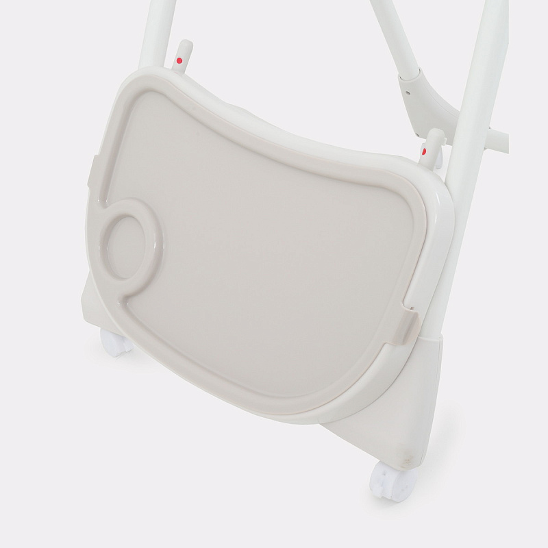 - двойная столешница. для принятия пищи используется верхняя столешница серого цвета. в ней имеется круглое отделение под поильник. серую столешницу очень удобно снимать сразу после еды, чтобы помыть или протереть. нижняя столешница используется для игр, лепки, рисования
