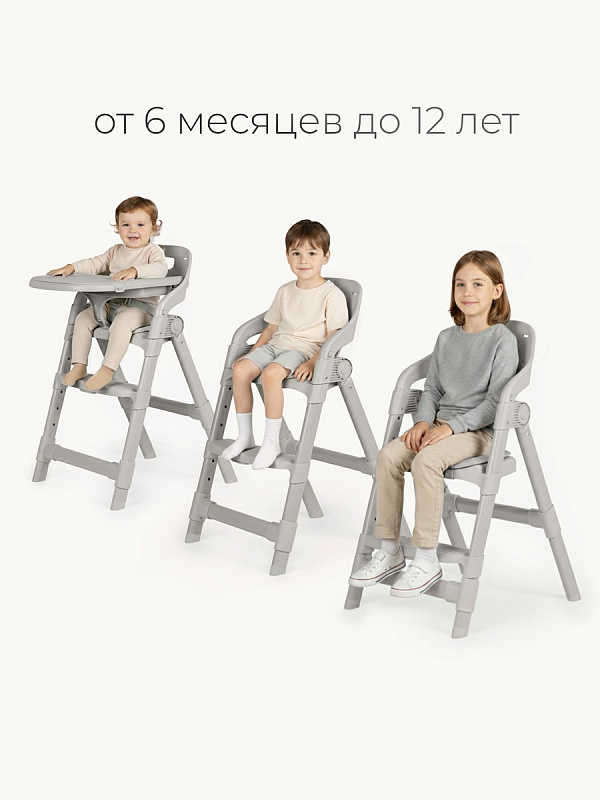 В комплекте 5-точечные ремни безопасности, которые удерживают ребенка и не дают ему самостоятельно выбраться из стульчика. Благодаря прочной конструкции выдерживает нагрузку до 80 кг. Подходит для детей от 6 месяцев до 12 лет.