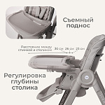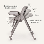1. Индивидуальные настройки: 5 уровней высоты сиденья, 3 положения спинки (вплоть до режима «шезлонг»), регулируемая высота самой спинки и 3 положения подножки. Вы создадите идеальную позу для кормления, игр или отдыха.