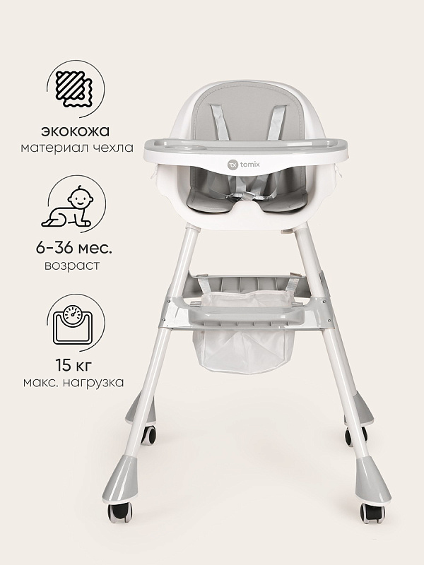 Стульчик для кормления Tomix Meal – безопасный и удобный детский стул для малышей от 6 месяцев до 3 лет.