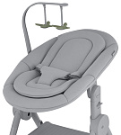 Сиденье для новорожденных оснащено подвесными игрушками с контрастными формами и цветами, которые стимулируют зрение с первых недель жизни.