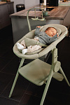 Сиденье для новорожденных можно легко регулировать в двух положениях наклона и по высоте. Сиденье стульчика для кормления имеет два угла наклона и два уровня высоты, а также подножку для старших детей.