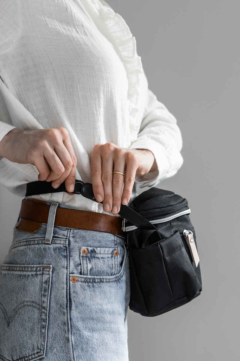 - Возможности использования: на ручке коляски, на руле велосипеда, как сумка на поясе, как сумка на плече