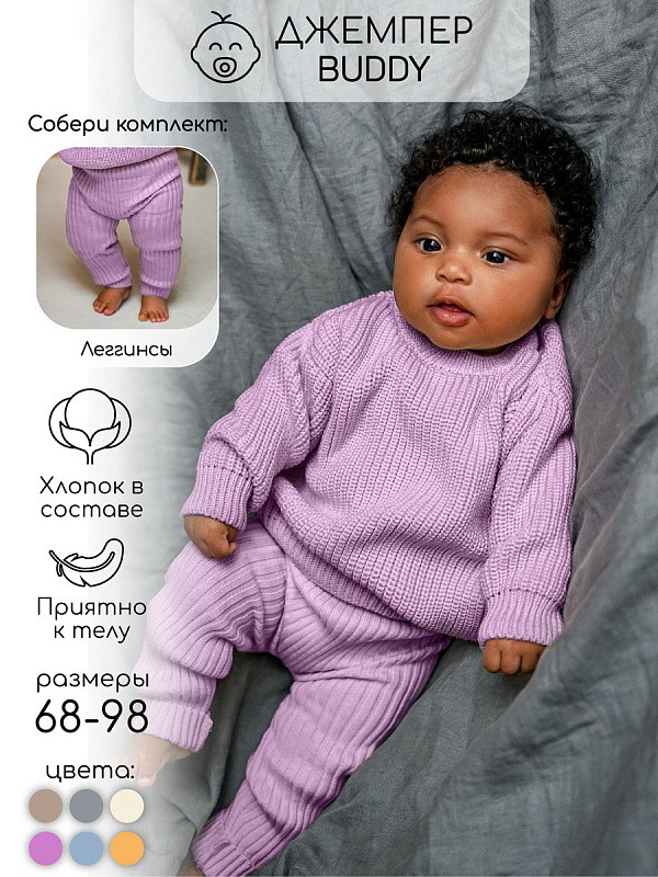 Свитер вязаный детский Amarobaby Pure Love Buddy лиловый 92