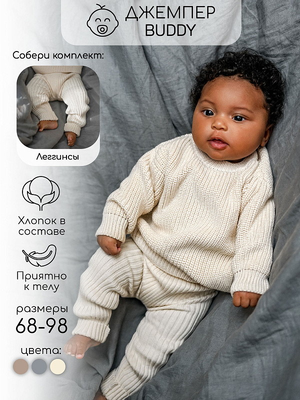 Свитер вязаный детский Amarobaby Pure Love Buddy молочный 98
