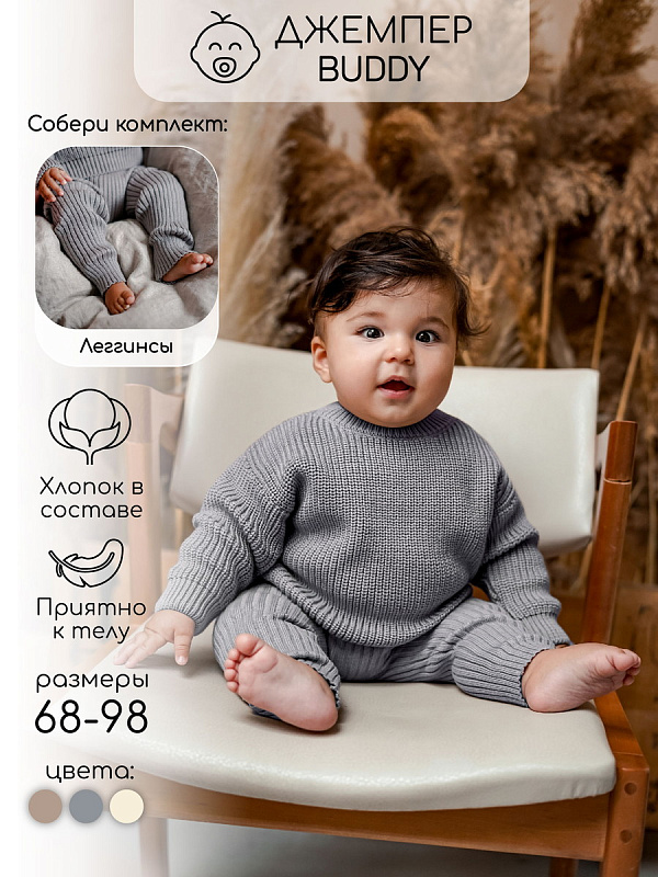 Свитер вязаный детский Amarobaby Pure Love Buddy серый 74