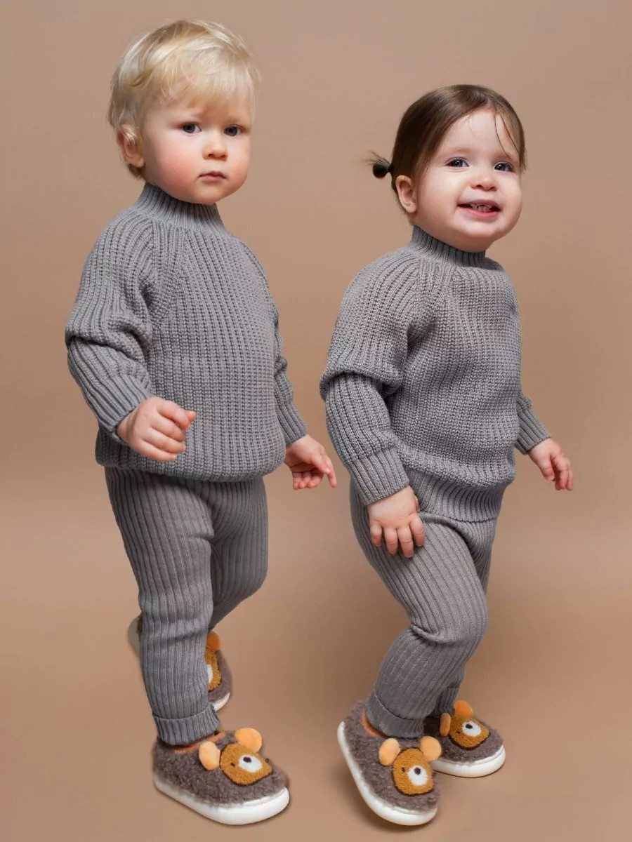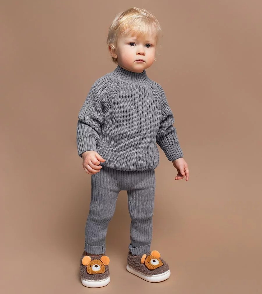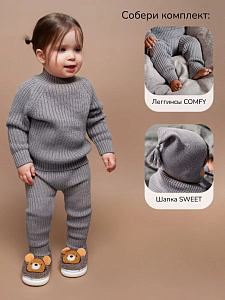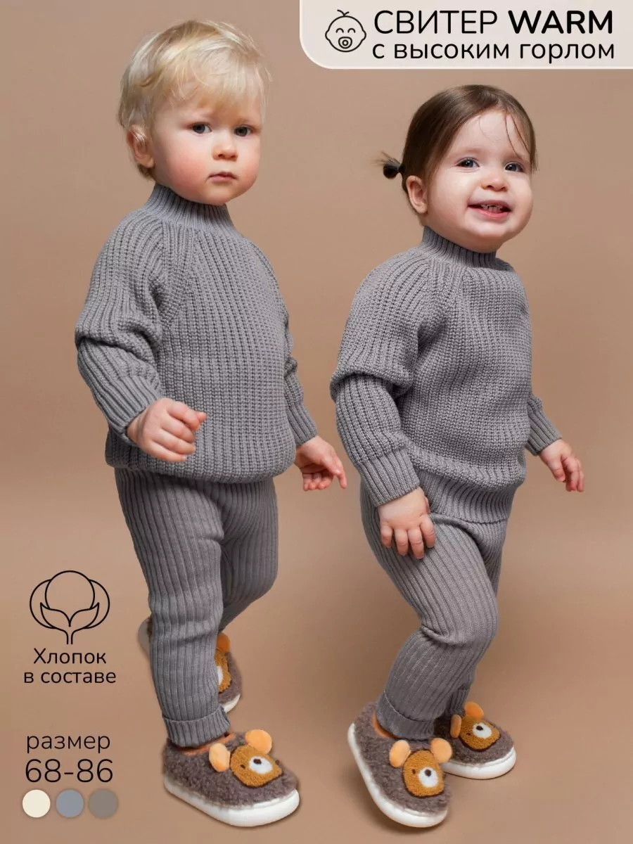 Свитер вязаный детский Amarobaby Warm с высокой горловиной серый 80