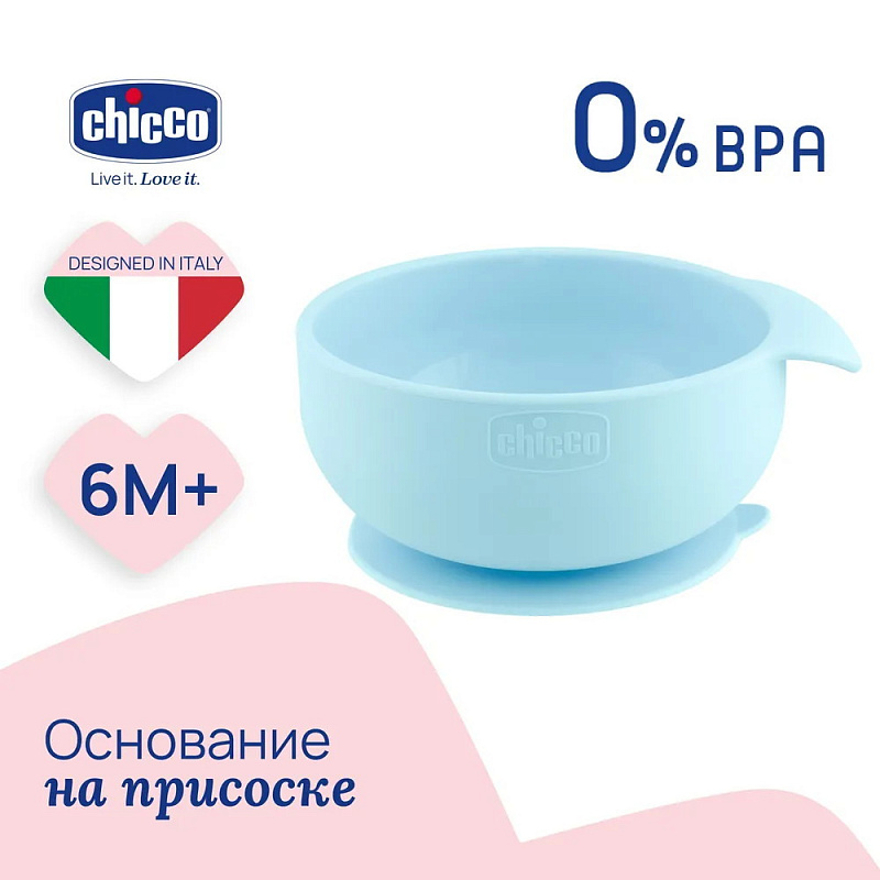 Тарелка Chicco на присоске 6 м+ голубой