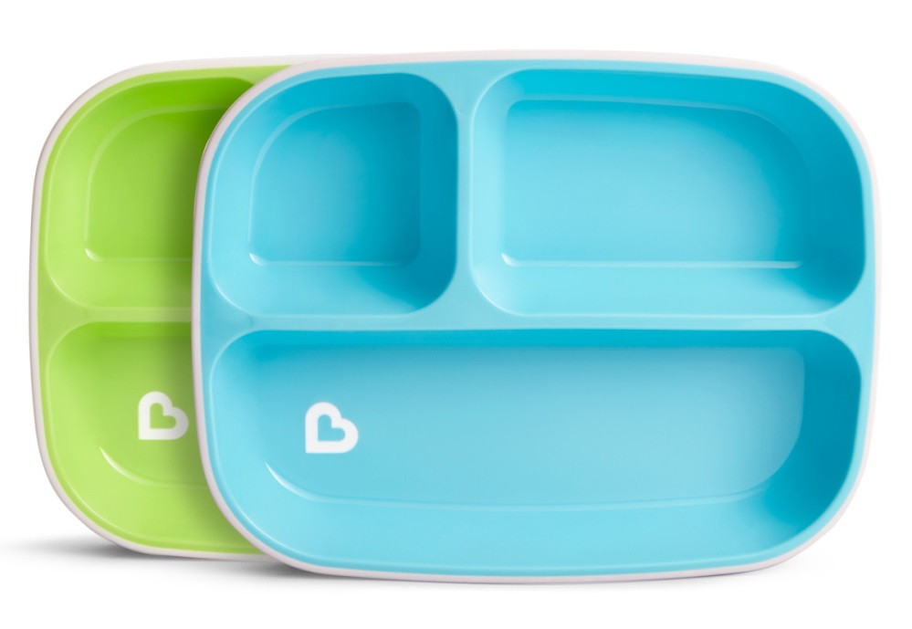 Тарелки детские Munchkin Splash секционные набор 2 шт. Голубая, зеленая