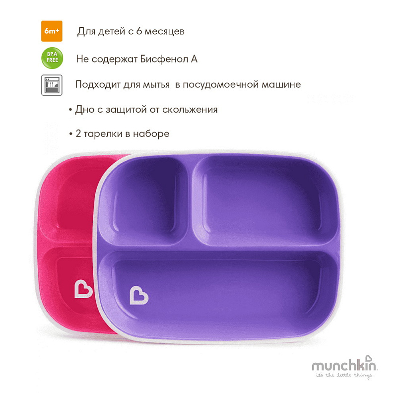 Тарелки детские Munchkin Splash секционные набор 2 шт. светло-розовая, светло-фиолетоваяНет оценокХарактеристики