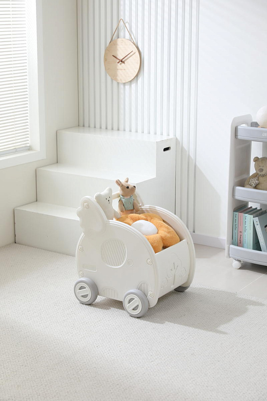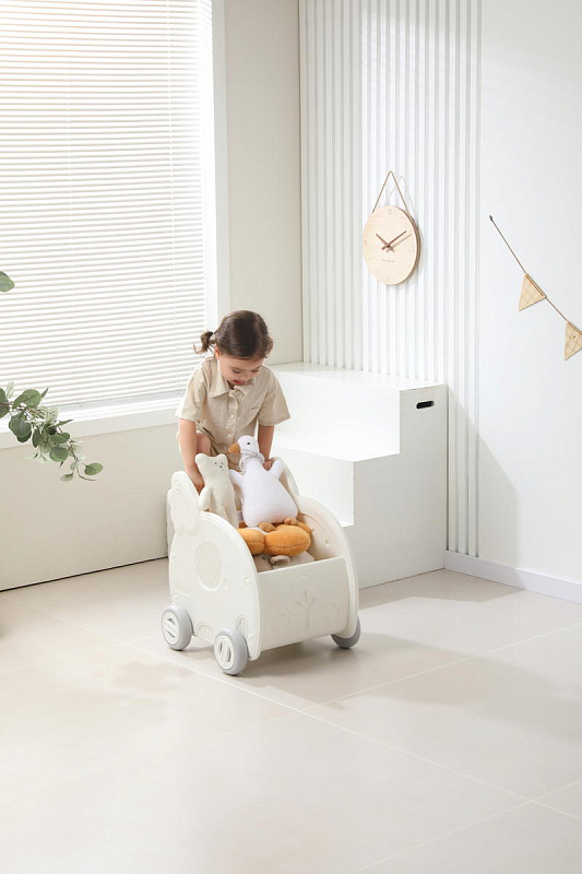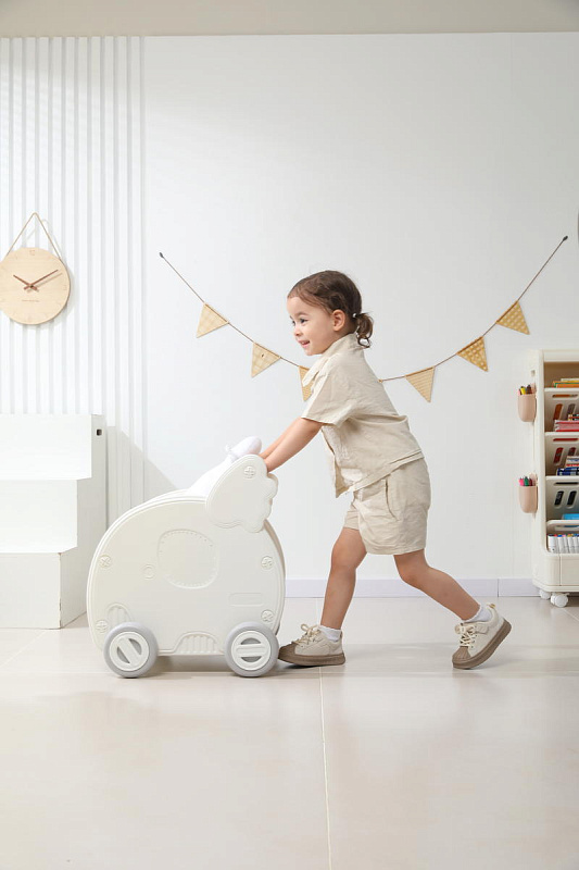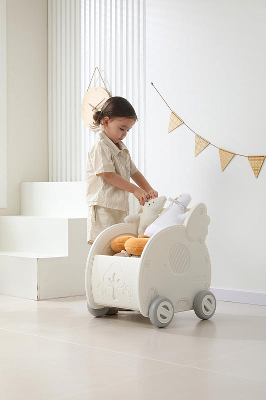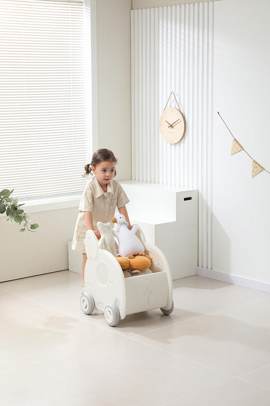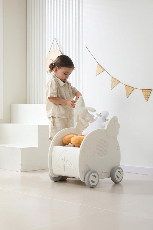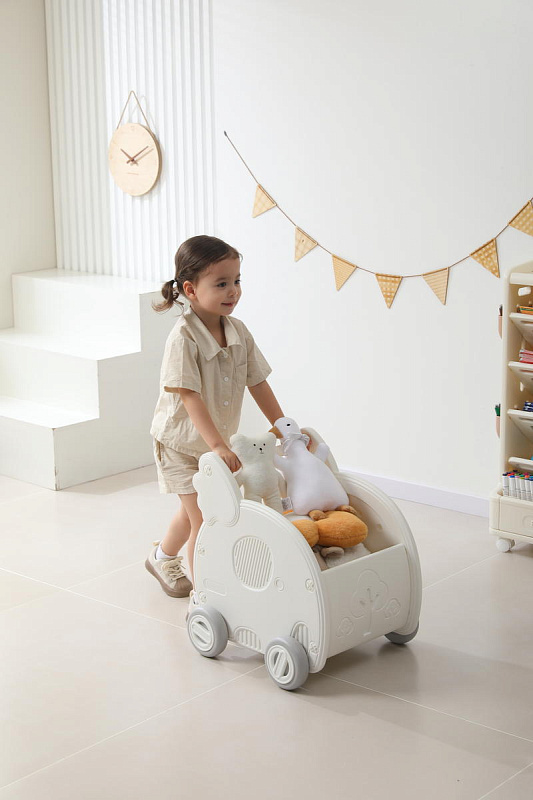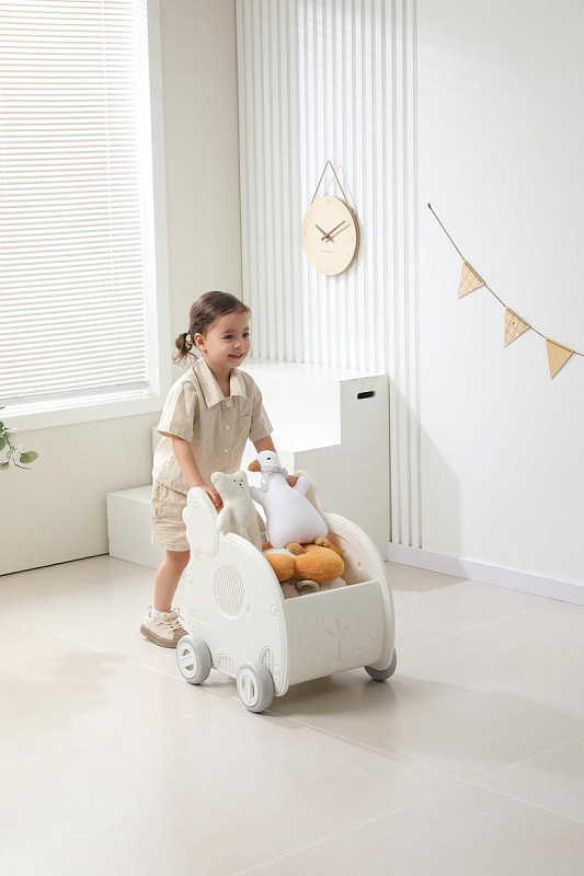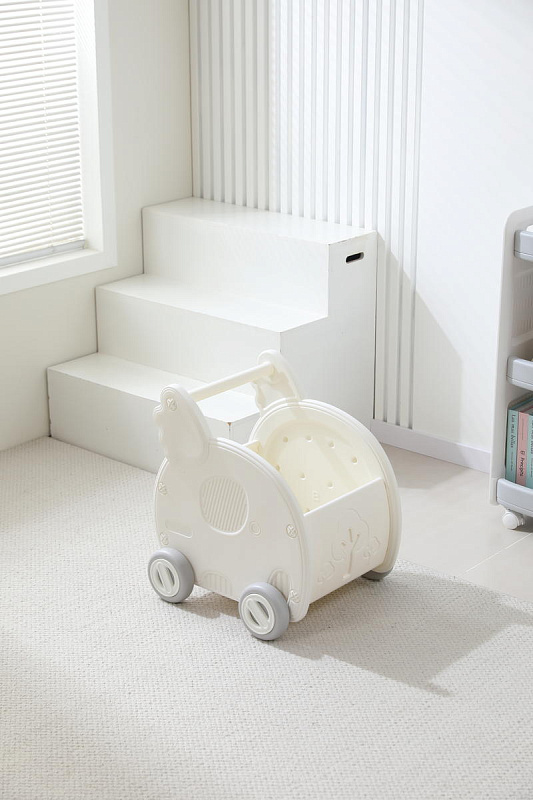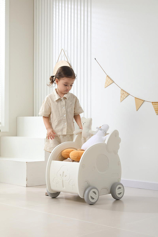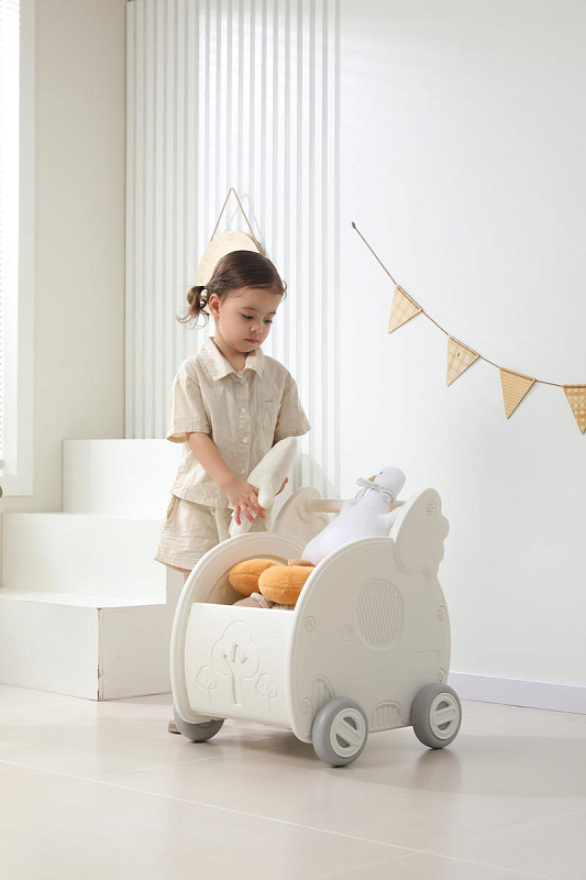 Легкая конструкция позволяет малышам легко управлять тележкой. Колеса каталки для игрушек обеспечивают плавный ход по любым поверхностям — будь то ламинат, ковровое покрытие или деревянный пол. Теперь дети смогут катать своих кукол и игрушки куда угодно!