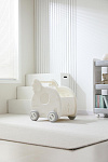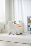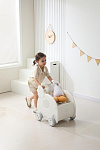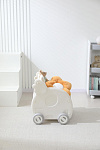 Кукольная коляска в виде слоника выполнена в спокойных пастельных цветах, которые сделают ее настоящим украшением игровой комнаты.