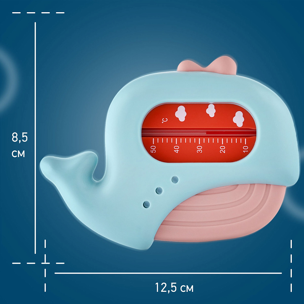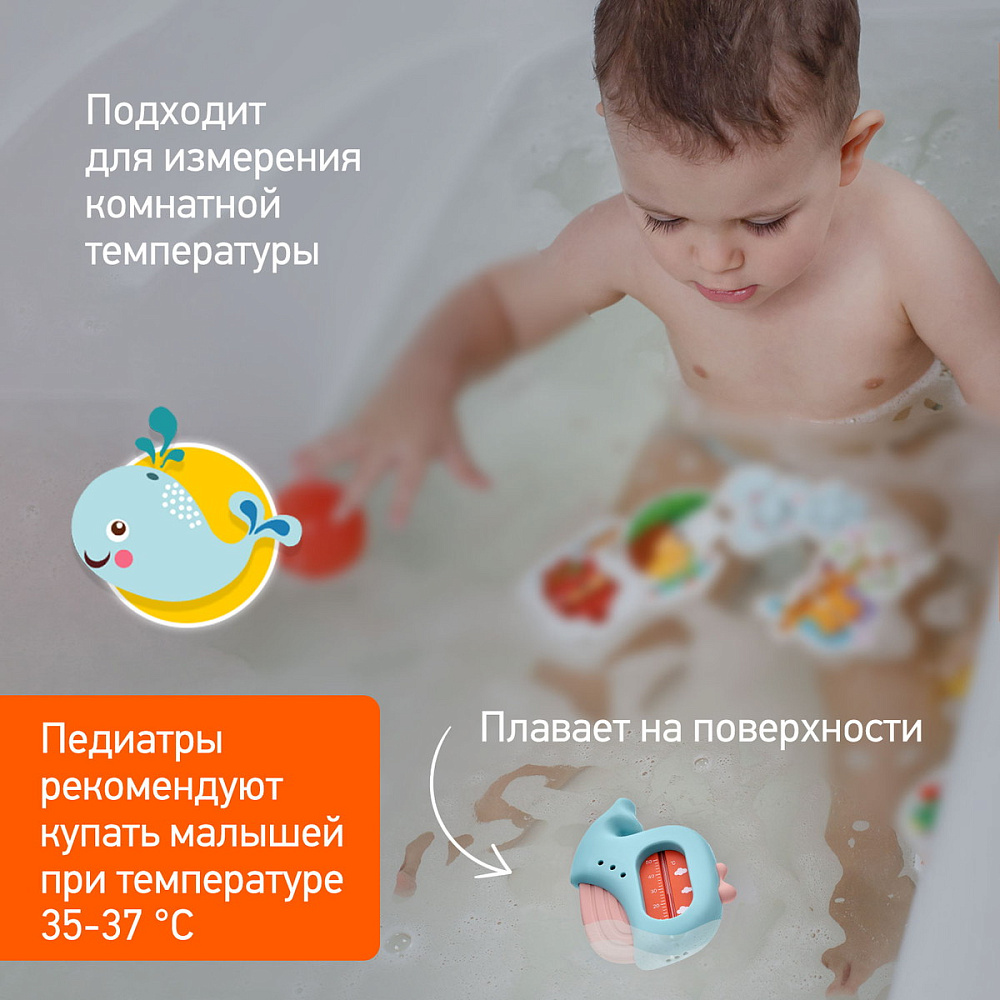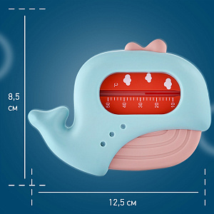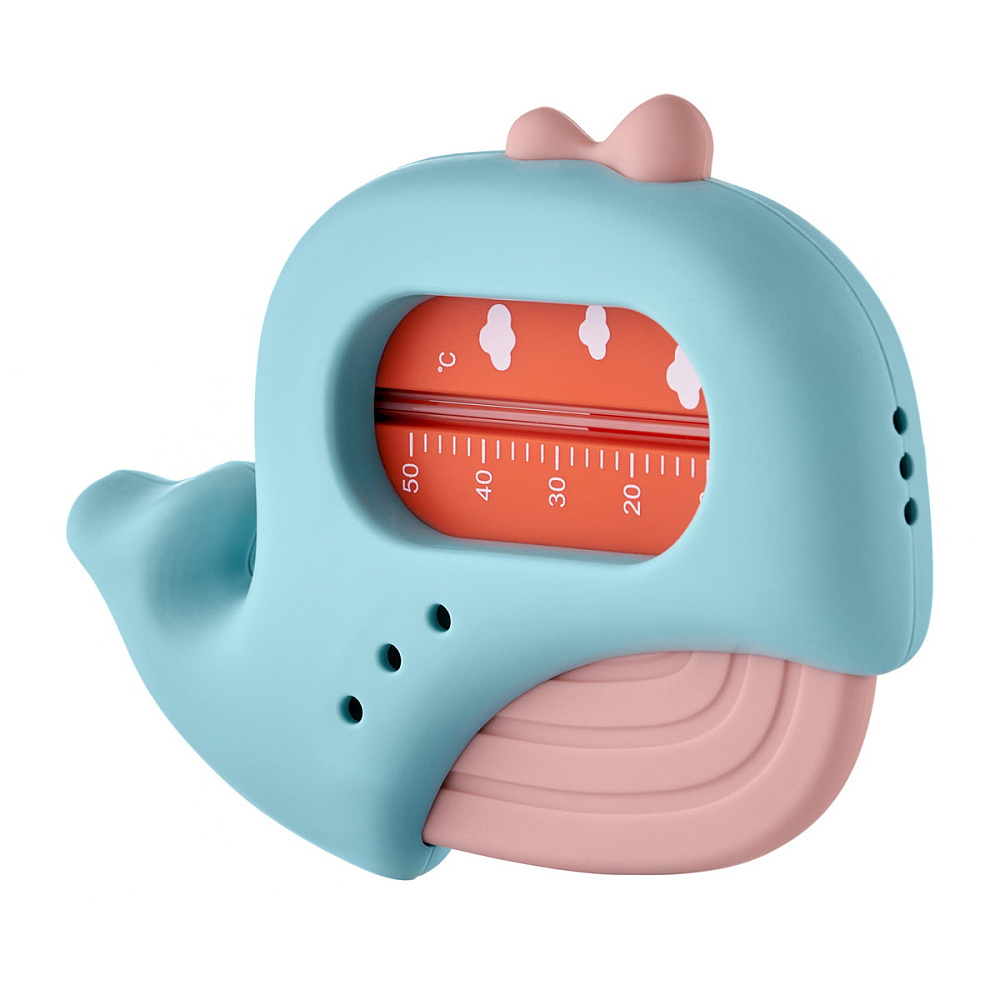 Детский термометр для воды в виде кита – многофункциональный аксессуар для купания, который точно измеряет температуру воды и обладает множеством дополнительных преимуществ! Сливные отверстия в корпусе позволяют ребенку играть с водой, что способствует развитию моторики рук и помогает ребенку улучшить координацию движений. Материал термометра обладает гладкой и приятной на ощупь текстурой, поэтому малышу комфортно держать термометр в руках. Дополнительно термометр оснащен мягкими элементами, которые можно грызть. Изделие плавает на поверхности и может оставаться в воде во время всего купания, так как не содержит ртути. Стеклянная шкала наполнена керосином и находится в пластиковом корпусе. Погремушка внутри радует малыша во время водных процедур и создает дополнительные звуковые эффекты, делая купание еще более увлекательным и интересным!