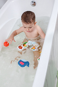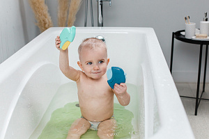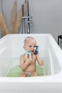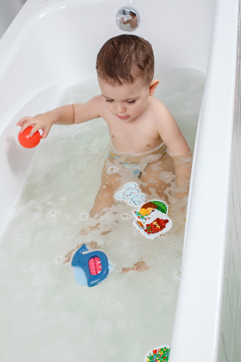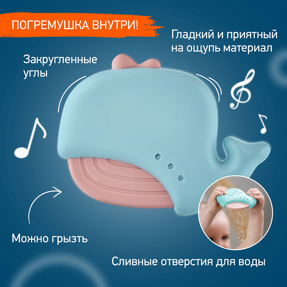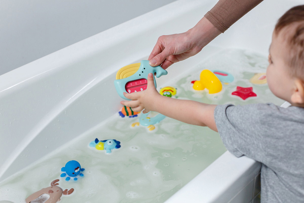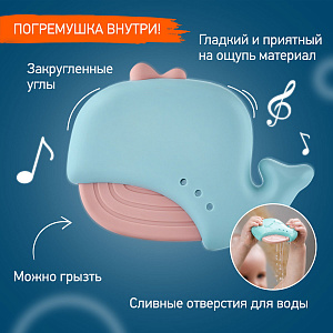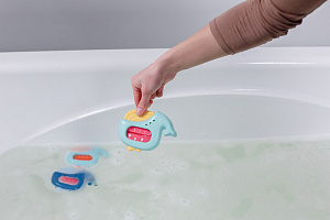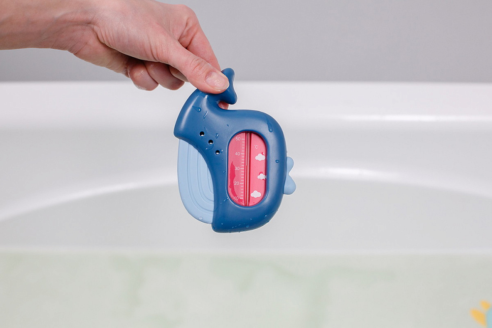 Детский термометр для воды в виде кита – многофункциональный аксессуар для купания, который точно измеряет температуру воды и обладает множеством дополнительных преимуществ! Сливные отверстия в корпусе позволяют ребенку играть с водой, что способствует развитию моторики рук и помогает ребенку улучшить координацию движений. Материал термометра обладает гладкой и приятной на ощупь текстурой, поэтому малышу комфортно держать термометр в руках. Дополнительно термометр оснащен мягкими элементами, которые можно грызть. Изделие плавает на поверхности и может оставаться в воде во время всего купания, так как не содержит ртути. Стеклянная шкала наполнена керосином и находится в пластиковом корпусе. Погремушка внутри радует малыша во время водных процедур и создает дополнительные звуковые эффекты, делая купание еще более увлекательным и интересным!