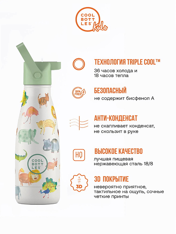 Термос–термобутылка Cool Bottles Kids серия Adventure African Safari 260 млНет оценокХарактеристики