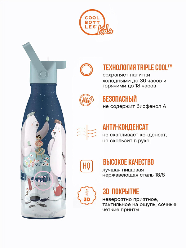 Термос–термобутылка Cool Bottles Kids серия Wonders Polar Bears 350 мл