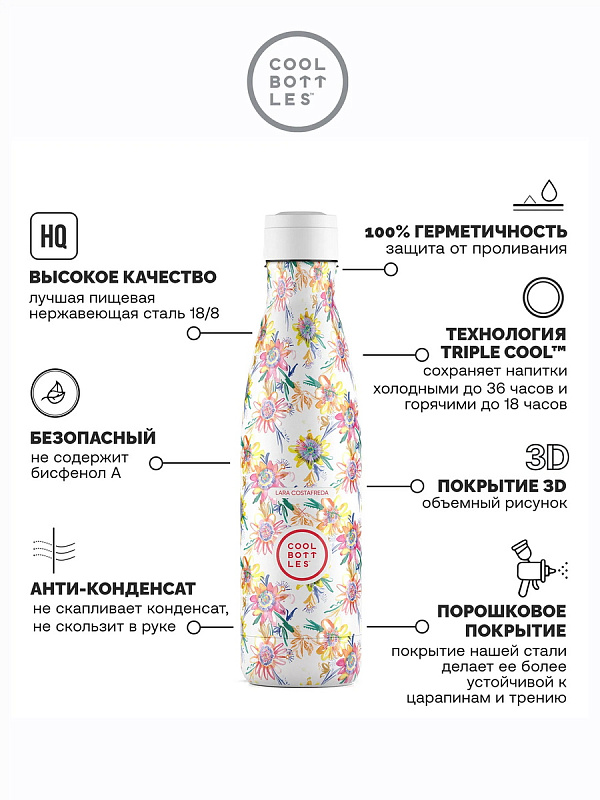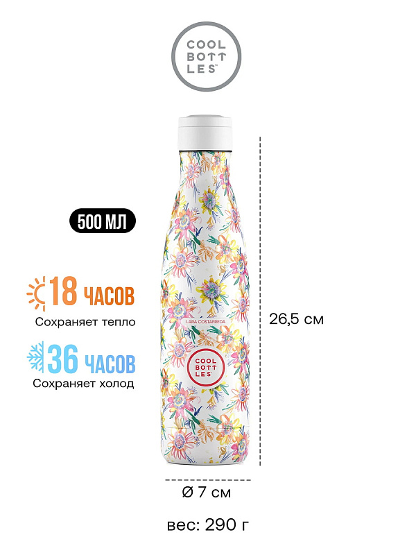 Термос–термобутылка Cool Bottles Lara Costrafreda Secret Blossoms 500 млНет оценокХарактеристики