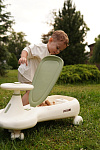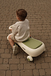 Специально разработанное сиденье - трансформер станет настоящей находкой для родителей: оно оборудовано удобным отсеком-органайзером, куда легко поместятся любимые игрушки малыша. Конструкция продумана таким образом, чтобы ножки ребёнка были надёжно зафиксированы на специальной подставке, гарантирующей удобство и безопасность.