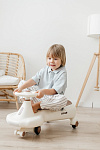 Особое внимание уделено безопасности конструкции: усиленные бесшумные колёса обеспечивают плавность хода и устойчивость на любых поверхностях. Благодаря возможности вращения на 360 градусов, малыш сможет поворачиваться свободно и комфортно, наслаждаясь каждым моментом игры.