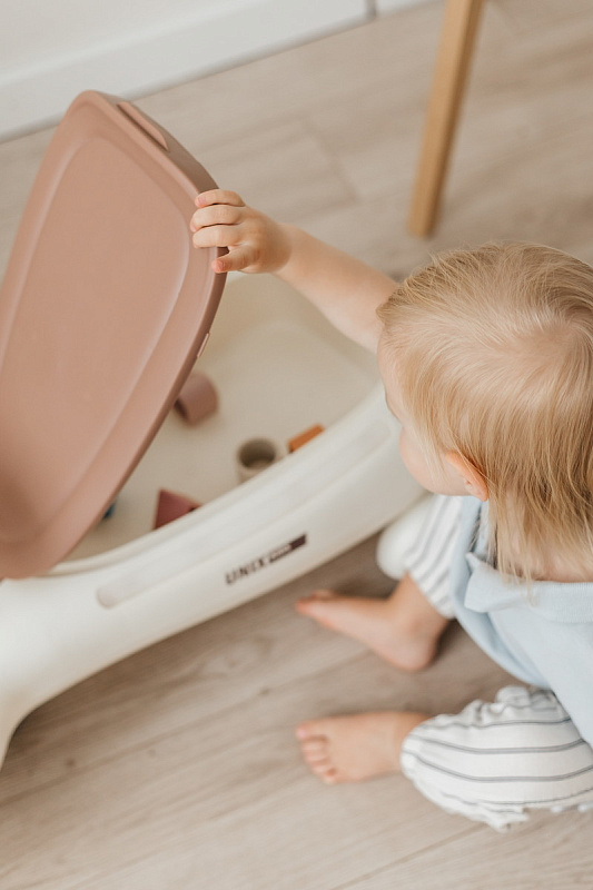 Специально разработанное сиденье - трансформер станет настоящей находкой для родителей: оно оборудовано удобным отсеком-органайзером, куда легко поместятся любимые игрушки малыша. Конструкция продумана таким образом, чтобы ножки ребёнка были надёжно зафиксированы на специальной подставке, гарантирующей удобство и безопасность.