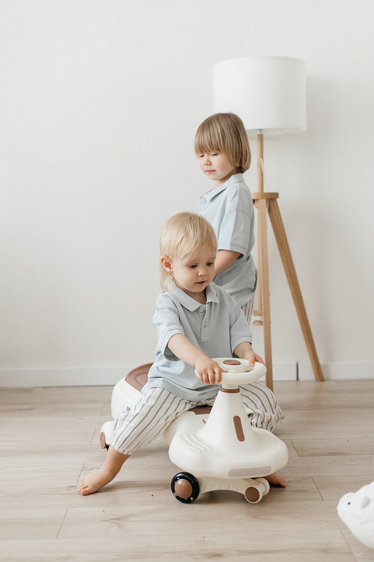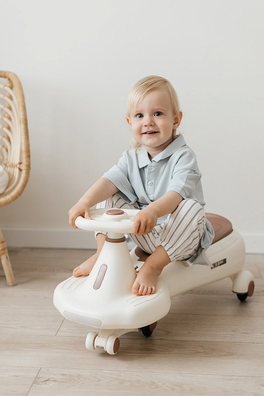Особое внимание уделено безопасности конструкции: усиленные бесшумные колёса обеспечивают плавность хода и устойчивость на любых поверхностях. Благодаря возможности вращения на 360 градусов, малыш сможет поворачиваться свободно и комфортно, наслаждаясь каждым моментом игры.