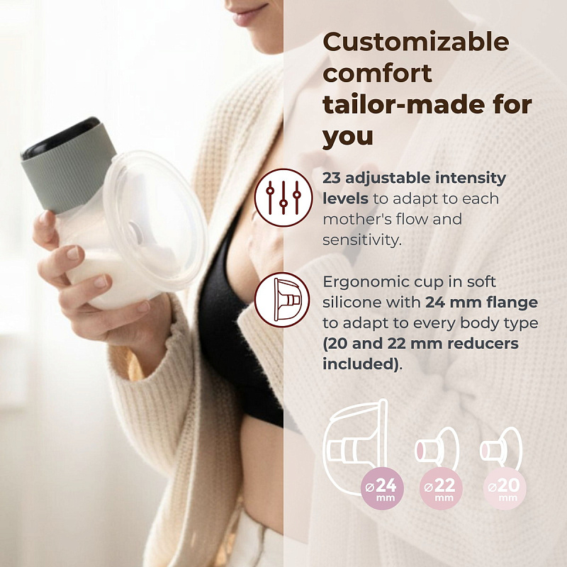 Благодаря специальной функции стимулирует вытягивание сосков и облегчает выделение молока даже в случае маленьких или плоских сосков.
