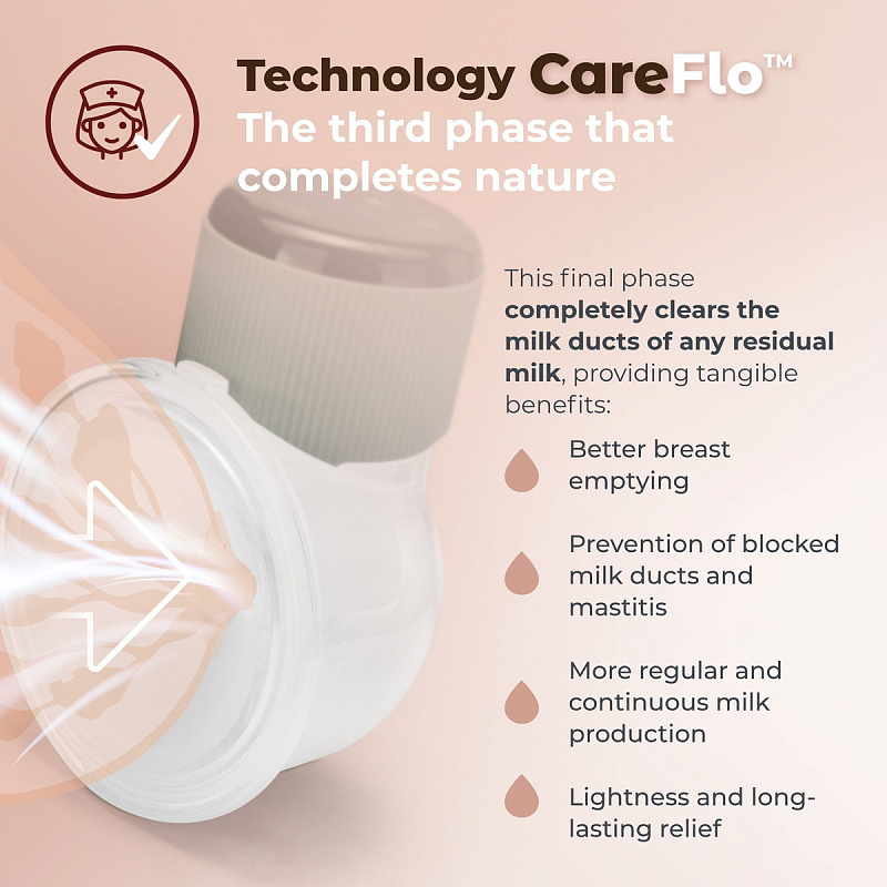После стимуляции соска, первые две фазы имитируют естественное сосание ребенка, стимулируя сцеживание и отток молока. Третья фаза, "антистаз", помогает предотвратить нагрубание и мастит.