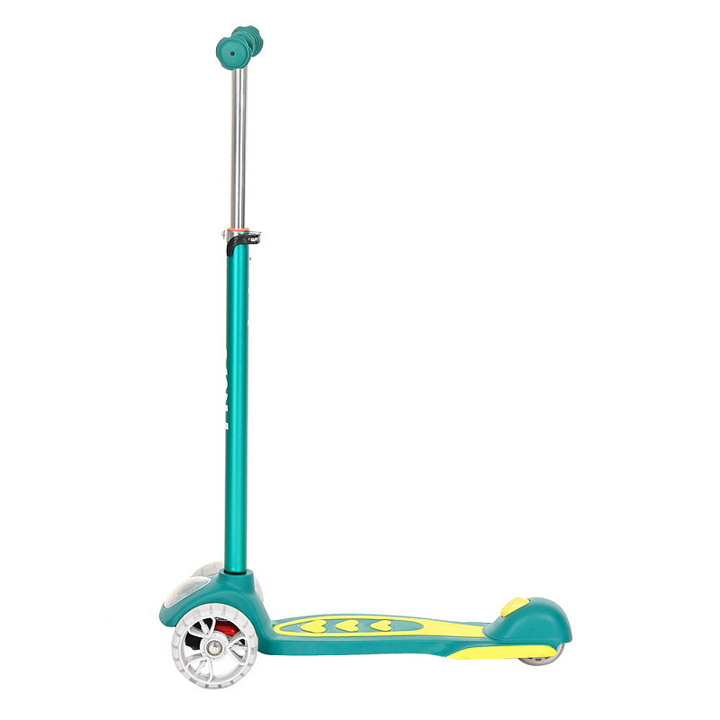 Трёхколёсный самокат оснащён подсветкой на колёсах. Передняя панель также дополнена световыми эффектами, которые работают от тряски при езде. Модель выполнена из качественных материалов.